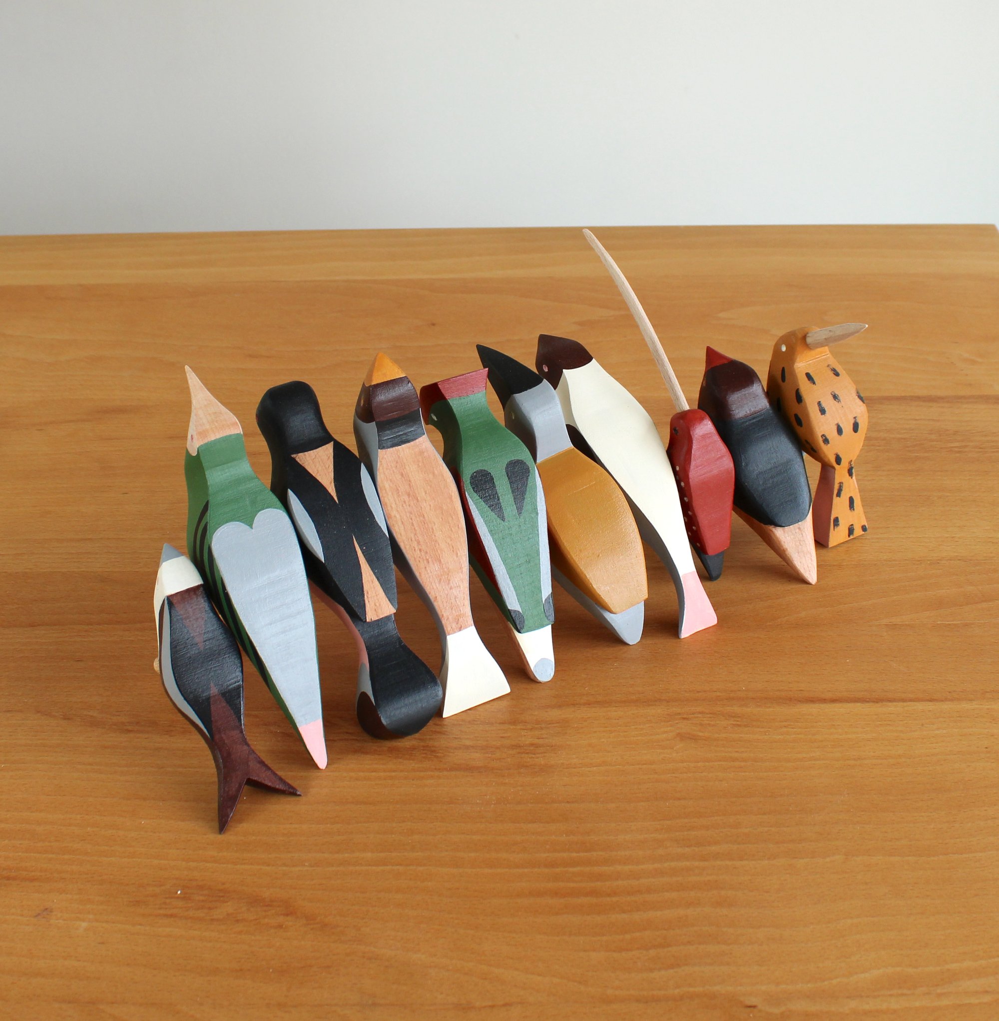 10 wooden birds hand-carved and painted by Valerio Vidali.